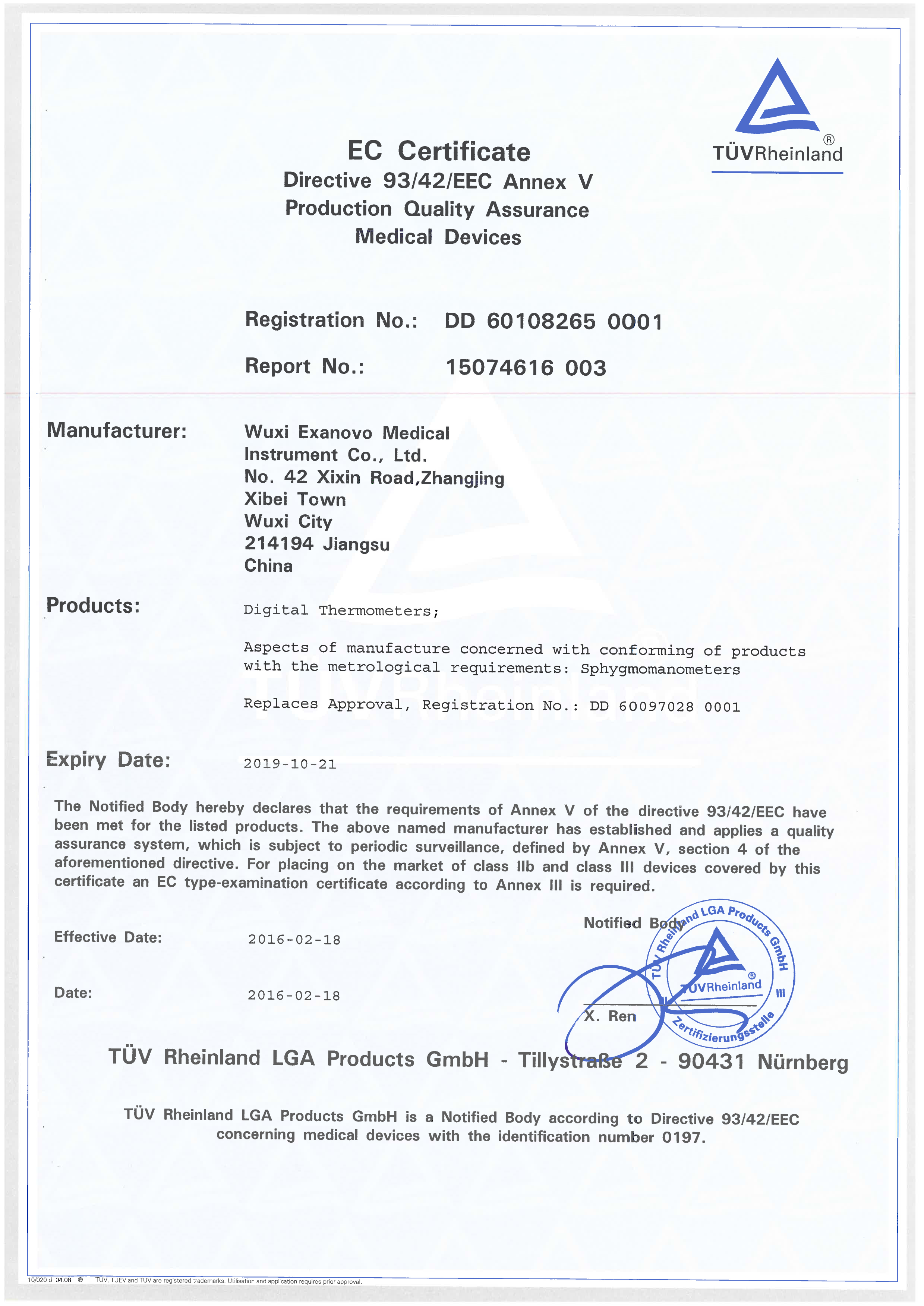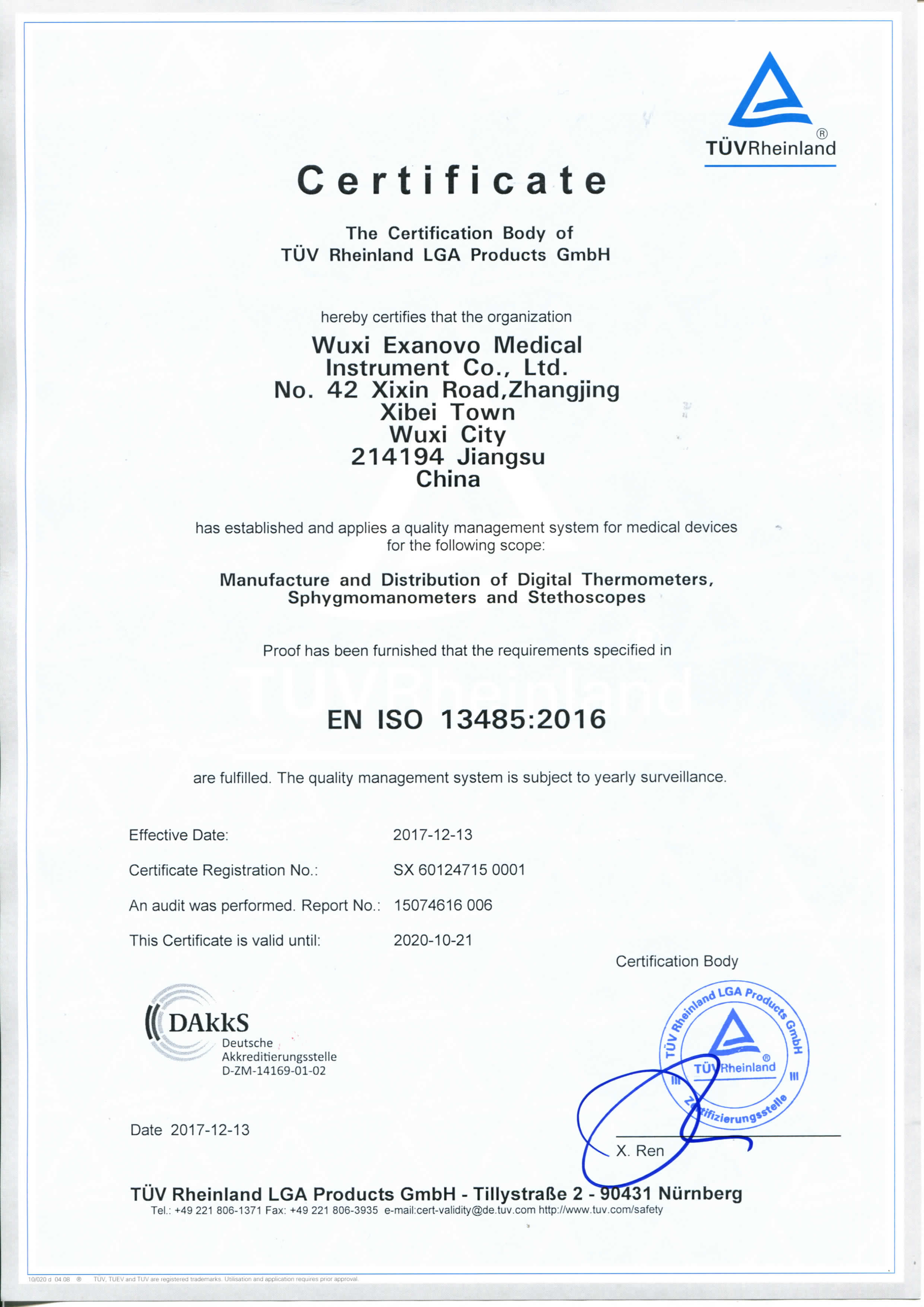 Wuxi Exanovo Medical Instrument Co.,Ltd.C2-LianDong U Gu, Xibei Town, Xishan District, Wuxi, 214194 Jiangsu P.R. China